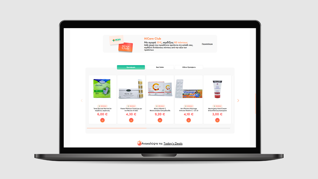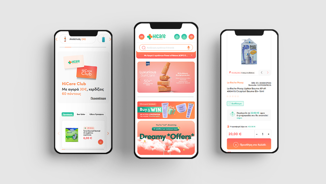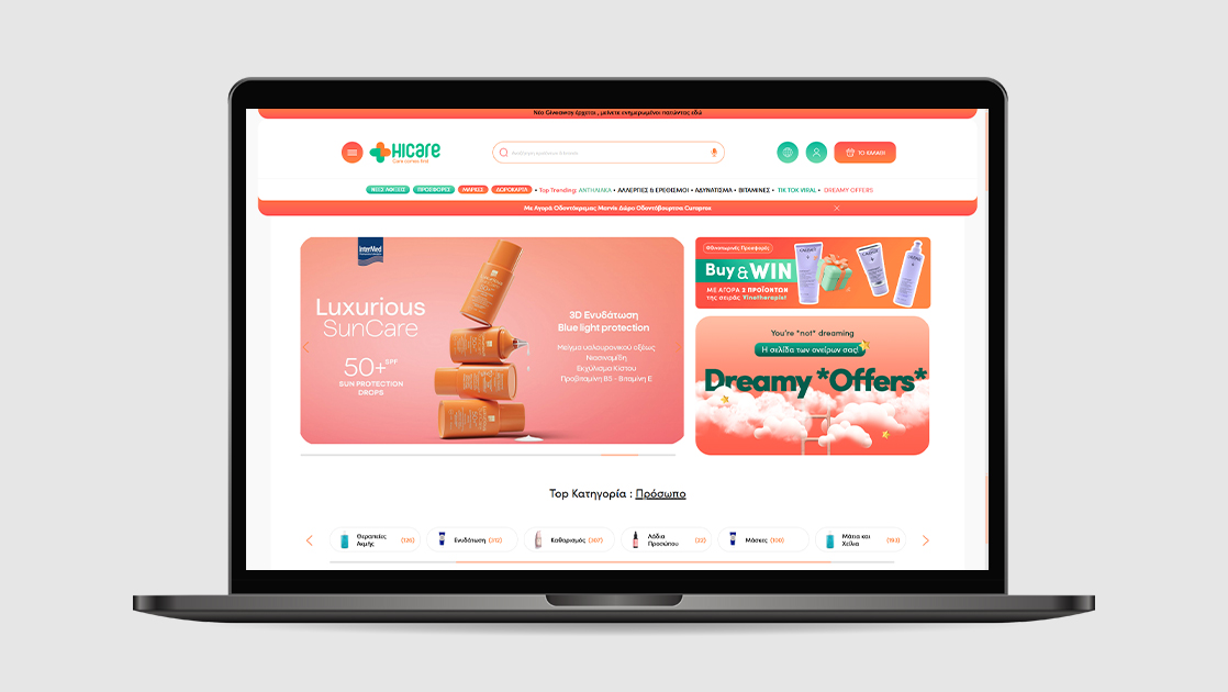 Η ομάδα της DigitalUp ανέλαβε τον πλήρη σχεδιασμό και την ανάπτυξη του ηλεκτρονικού καταστήματος hicare.shop, ενός σύγχρονου φαρμακείου που θέλει να προσφέρει μια άμεση, εύχρηστη και εμπορικά αποδοτική εμπειρία στους χρήστες του. Η προσέγγισή μας επικεντρώθηκε στη λειτουργικότητα, την ταχύτητα και τη βελτιστοποίηση για πωλήσεις, με στόχο να υποστηρίξουμε τόσο την καθημερινή λειτουργία του eShop όσο και τις ειδικές προωθητικές ενέργειες.