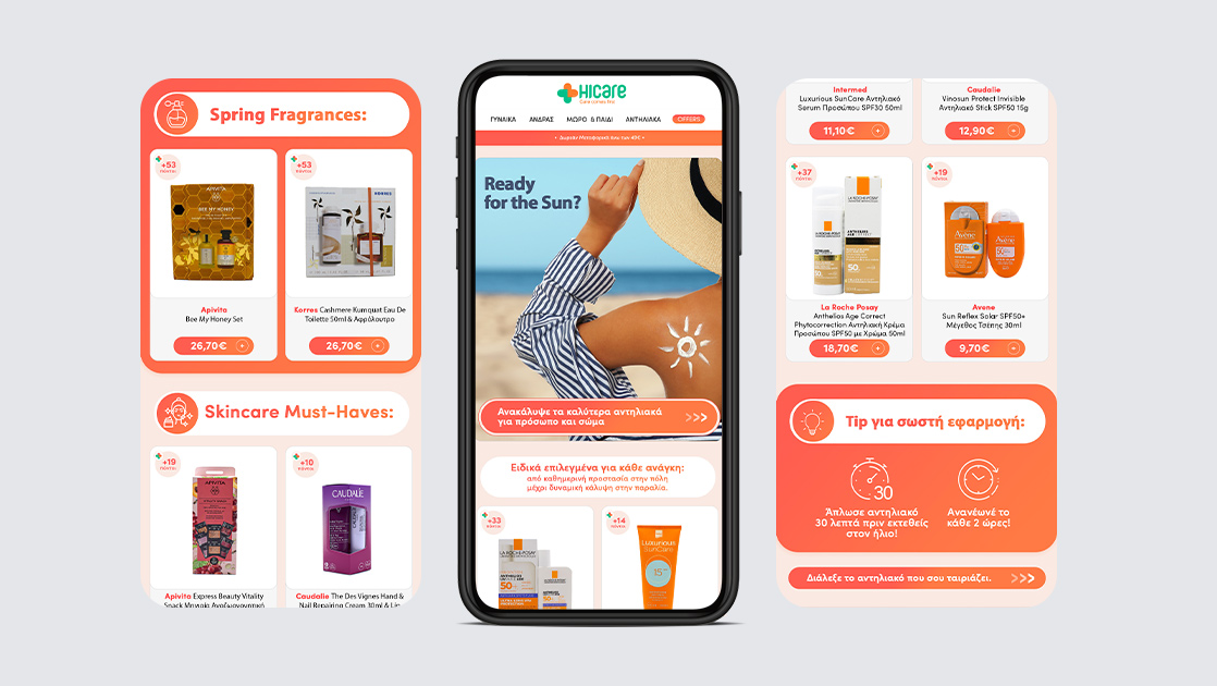 Για την ενίσχυση της αναγνωρισιμότητας και την προσέγγιση νέου κοινού, εφαρμόσαμε στρατηγικές διαφήμισης σε Google Ads και Meta Ads. Η στρατηγική μας επικεντρώθηκε στην ενίσχυση της σχέσης με το υπάρχον loyal κοινό του HiCare και στην προσέλκυση νέων πελατών μέσω στοχευμένων καμπανιών. Παράλληλα, αναδείξαμε τα βασικά χαρακτηριστικά του brand στα Social Media για να ενισχύσουμε τη σύνδεση με το κοινό, με διαρκή ενημέρωση και προσφορές που παρακινούσαν τους χρήστες να αλληλεπιδράσουν με το brand. Επίσης, εφαρμόσαμε στρατηγική Email Marketing, παρέχοντας εξατομικευμένες προσφορές και ενημερώσεις για τα προϊόντα, αυξάνοντας την αφοσίωση των πελατών και την πιθανότητα επαναλαμβανόμενων αγορών.